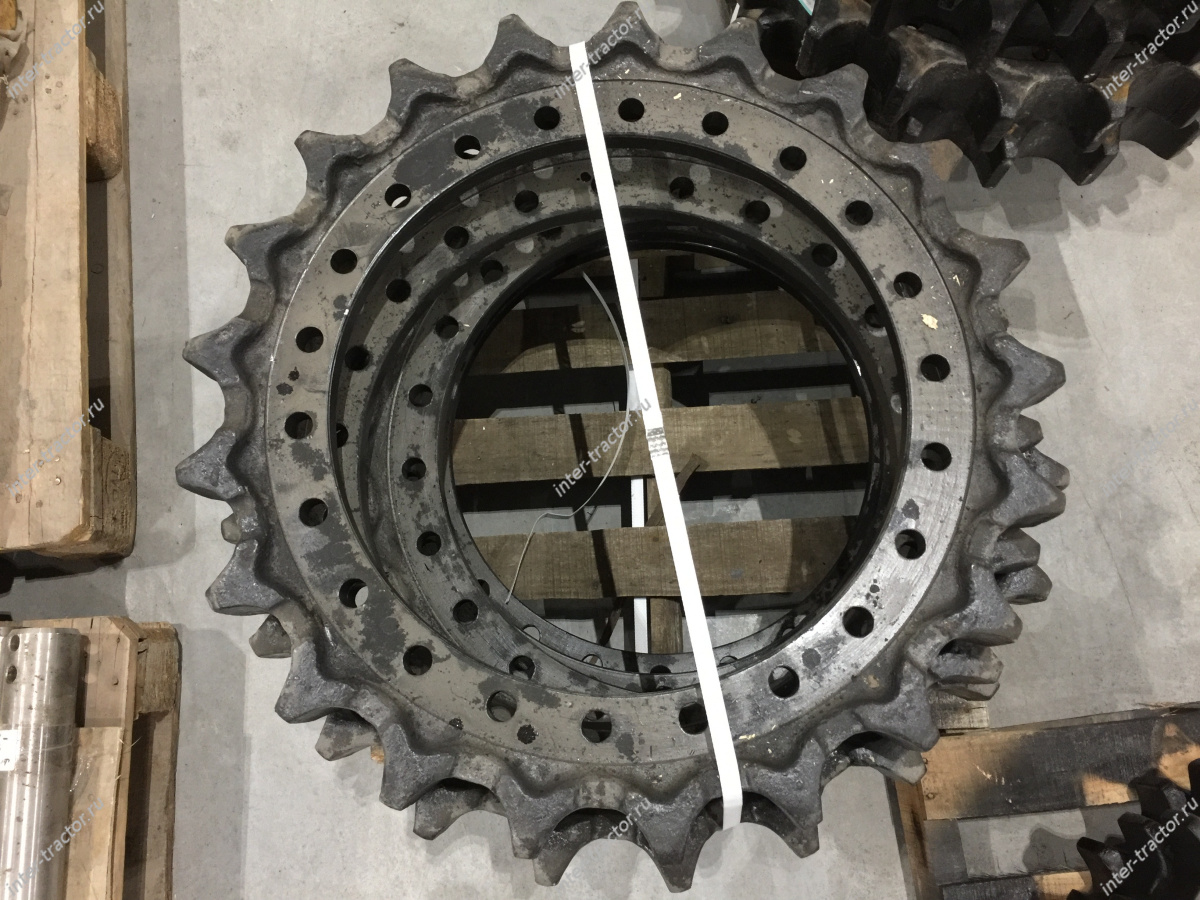 1033163:Звездочка является ключевым элементом ходовой части — перематывает гусеницу, преобразуя свое вращение в поступательное движение механизма. Деталь представляет собой колесо с зубьями, которое цепляет гребни гусеничной ленты и проворачивает ее. Крепится гайками и шпильками к фланцу ведомого вала конечной передачи. Купить запчасть можно в нашей компании в Перми или заказать с доставкой в другой город РФ. У нас выгодные цены, квалифицированные сотрудники помогут с выбором и оформлением заказа.